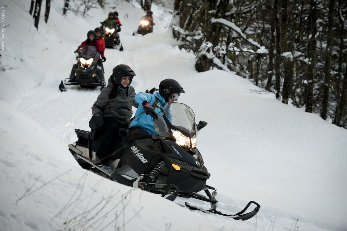 Viva a Noite Nórdica em Bariloche com trilha na neve, moto de neve e jantar típico em meio à floresta nevada. Experiência única e inesquecível.