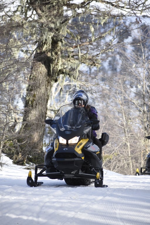 Para garantir uma experiência segura e confortável, usamos motos de neve SKI-DOO, uma marca líder mundial. Oferecemos modelos Grand Touring, aprovados de fábrica para duas pessoas, equipados com motores ACE de 600 cc e 900 cc que oferecem ótimo desempenho e manobrabilidade na neve.