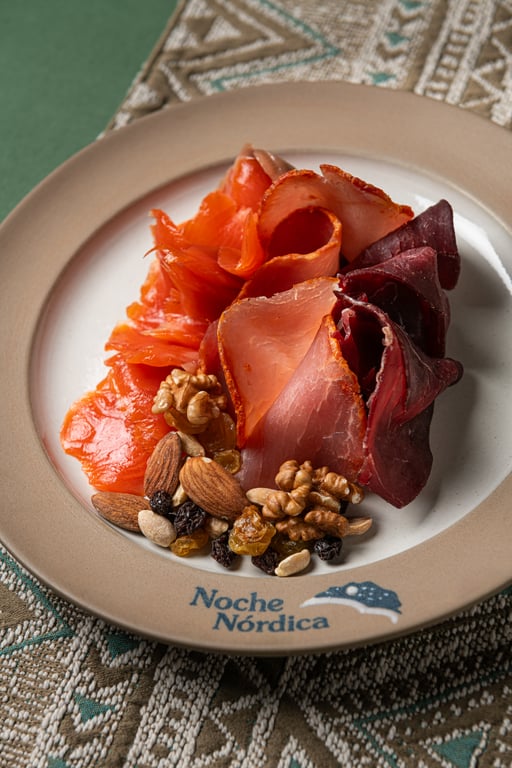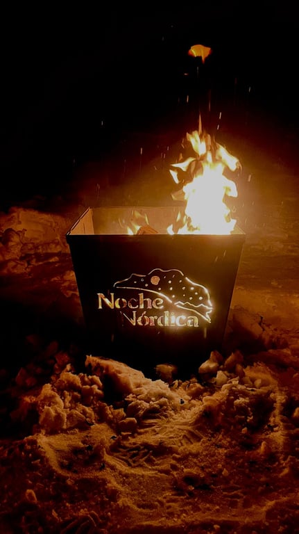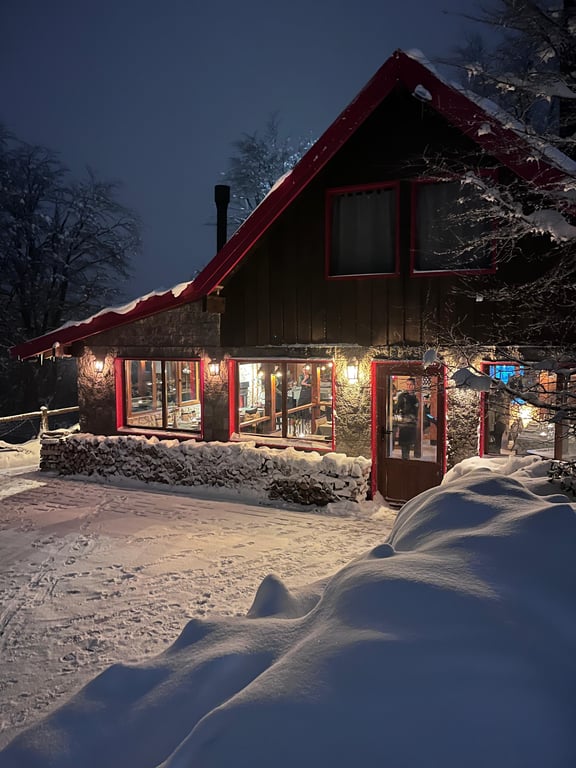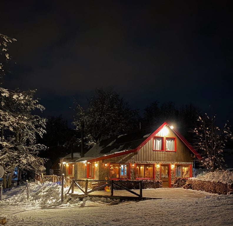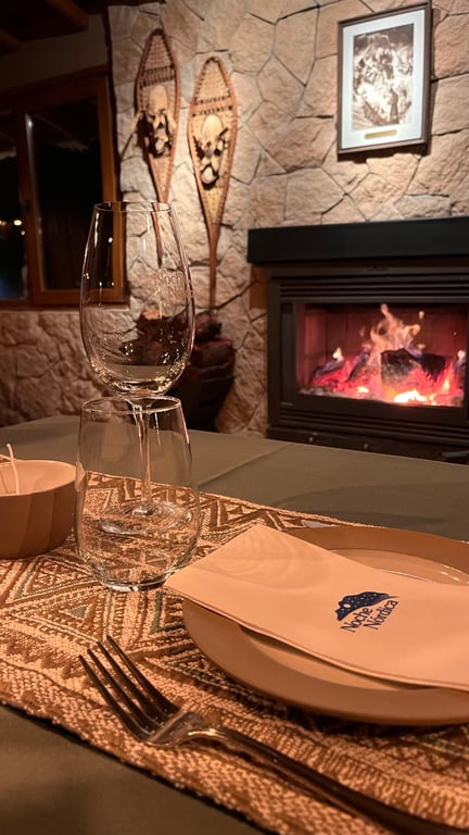 Após aproximadamente 20 minutos, chega-se a um espaço dentro da mata nativa de lengas preparado com fogões, caldeirões e tochas onde são oferecidos vinho quente e chocolate quente para recuperar a temperatura. Depois, são necessários mais cerca de 20 minutos para chegar ao nosso acolhedor refúgio de montanha, onde começa o desenvolvimento da nossa proposta gastronómica.