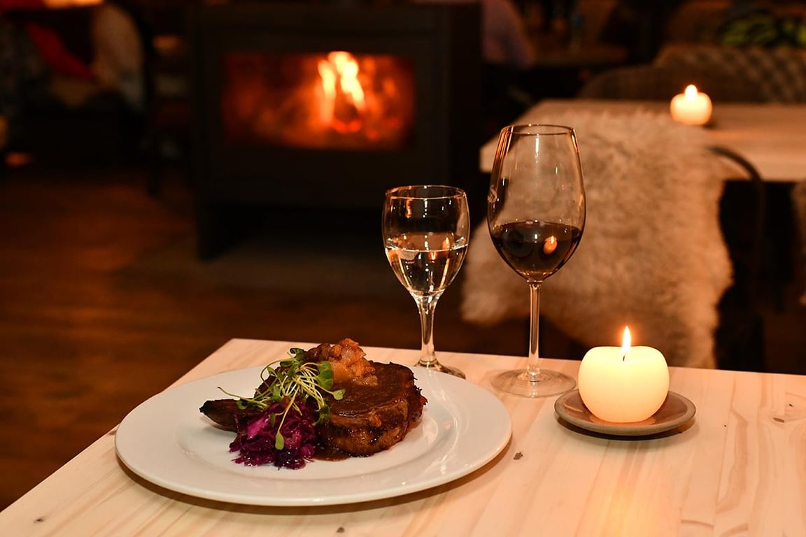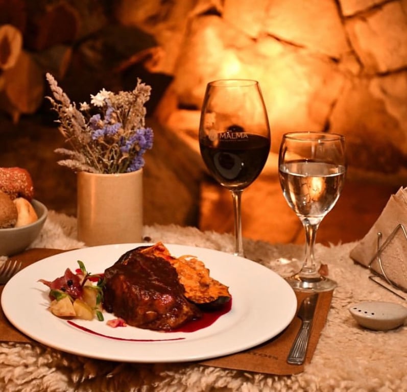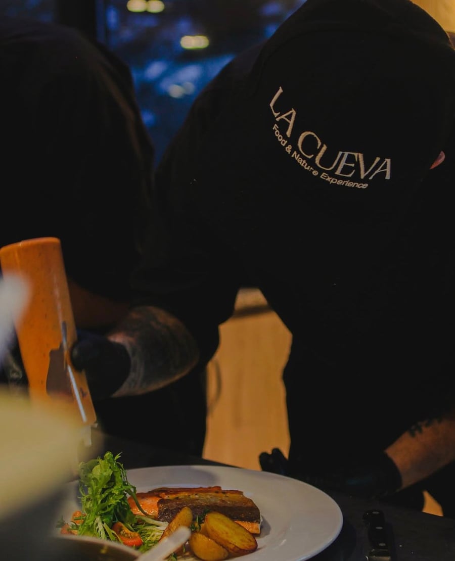 Ao chegar ao La Cueva, os participantes são recebidos em um ambiente rústico e aconchegante, típico da montanha, para desfrutar de um jantar completo de quatro tempos, com pratos tradicionais da culinária patagônica, preparados com ingredientes selecionados e muito sabor.