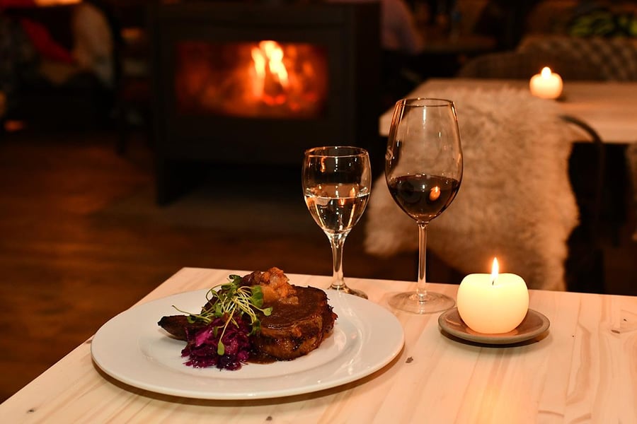 Jantar de quatro tempos em refúgio de montanha